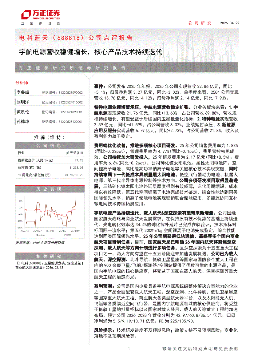 电科蓝天:方正证券-电科蓝天-688818-公司点评报告:宇航电源营收稳健增长,核心产品技术持续迭代-260422