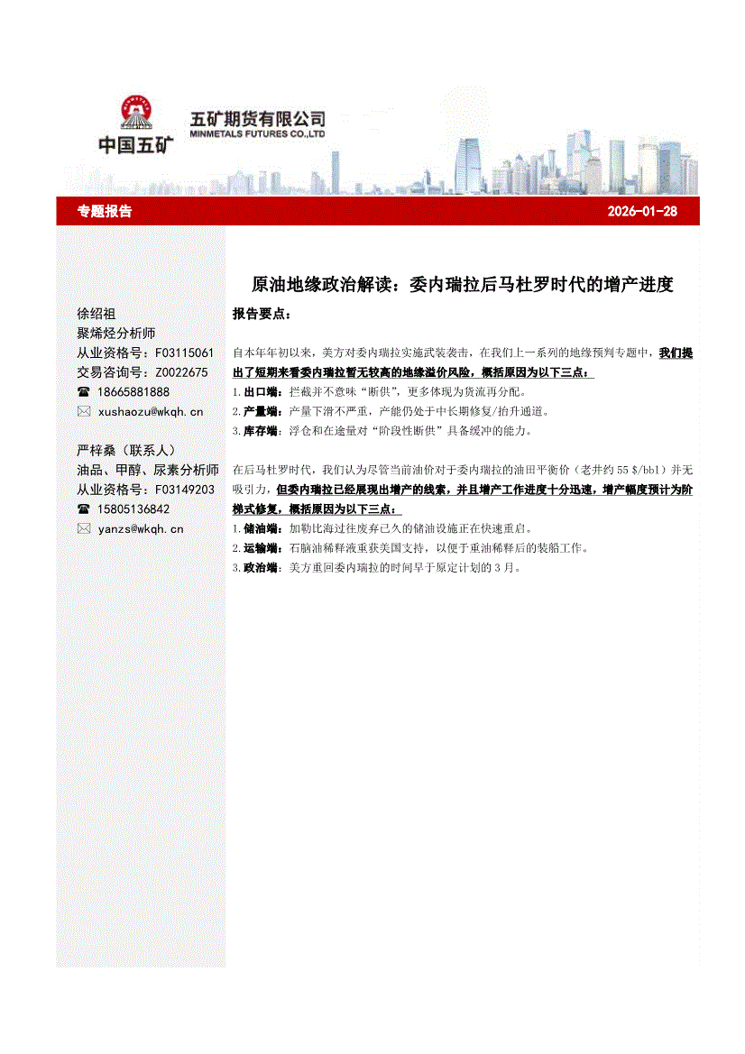 五矿期货-原油地缘政治解读:委内瑞拉后马杜罗时代的增产进度-260128