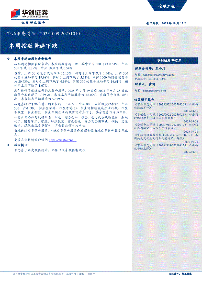 华创证券-【金工周报】部分指数翻空,后市或转为中性震荡-251012