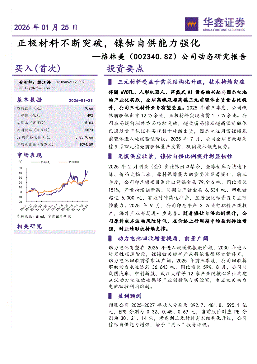 格林美:华鑫证券-格林美-002340-公司动态研究报告:正极材料不断突破,镍钴自供能力强化-260125