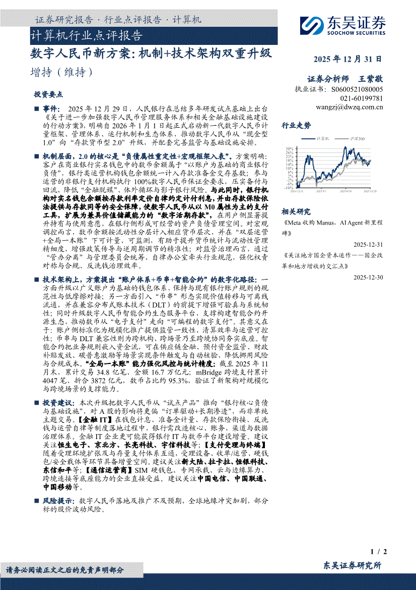 计算机行业:东吴证券-计算机行业点评报告:数字人民币新方案,机制+技术架构双重升级-251231