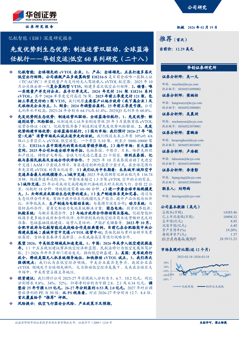 华创证券-机械行业亿航智能(EH)深度研究报告:华创交运|低空60系列研究(二十八),先发优势到生态优势,制造运营双驱动,全球蓝海任航行-260219