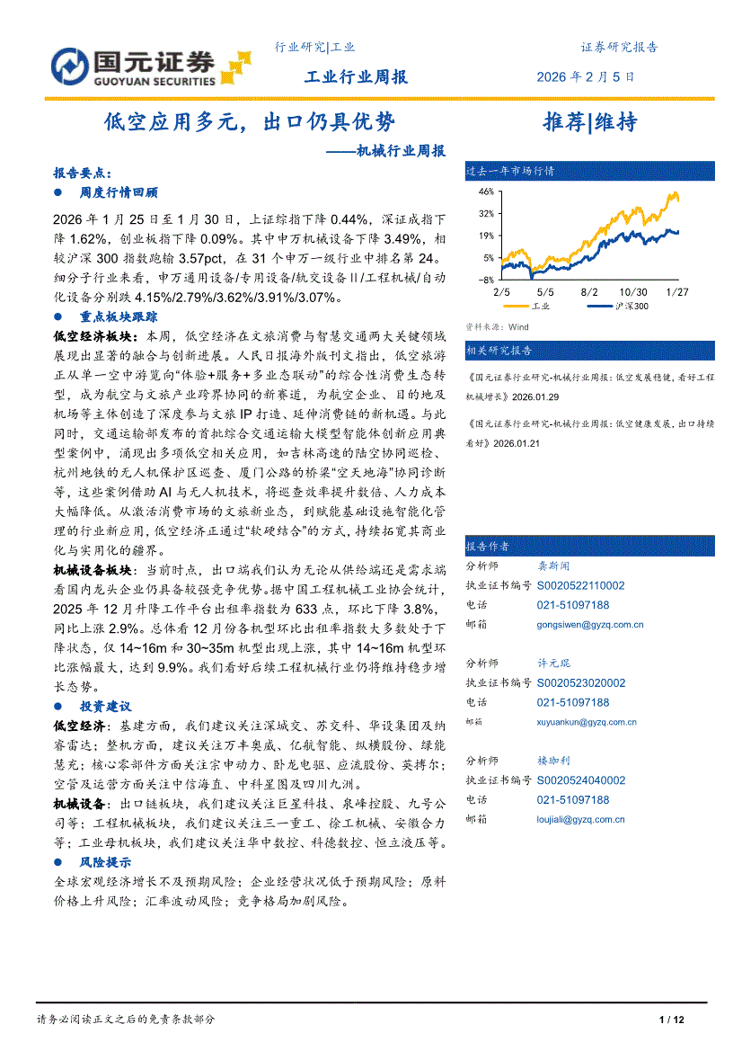 机械行业:国元证券-机械行业周报:低空应用多元,出口仍具优势-260205