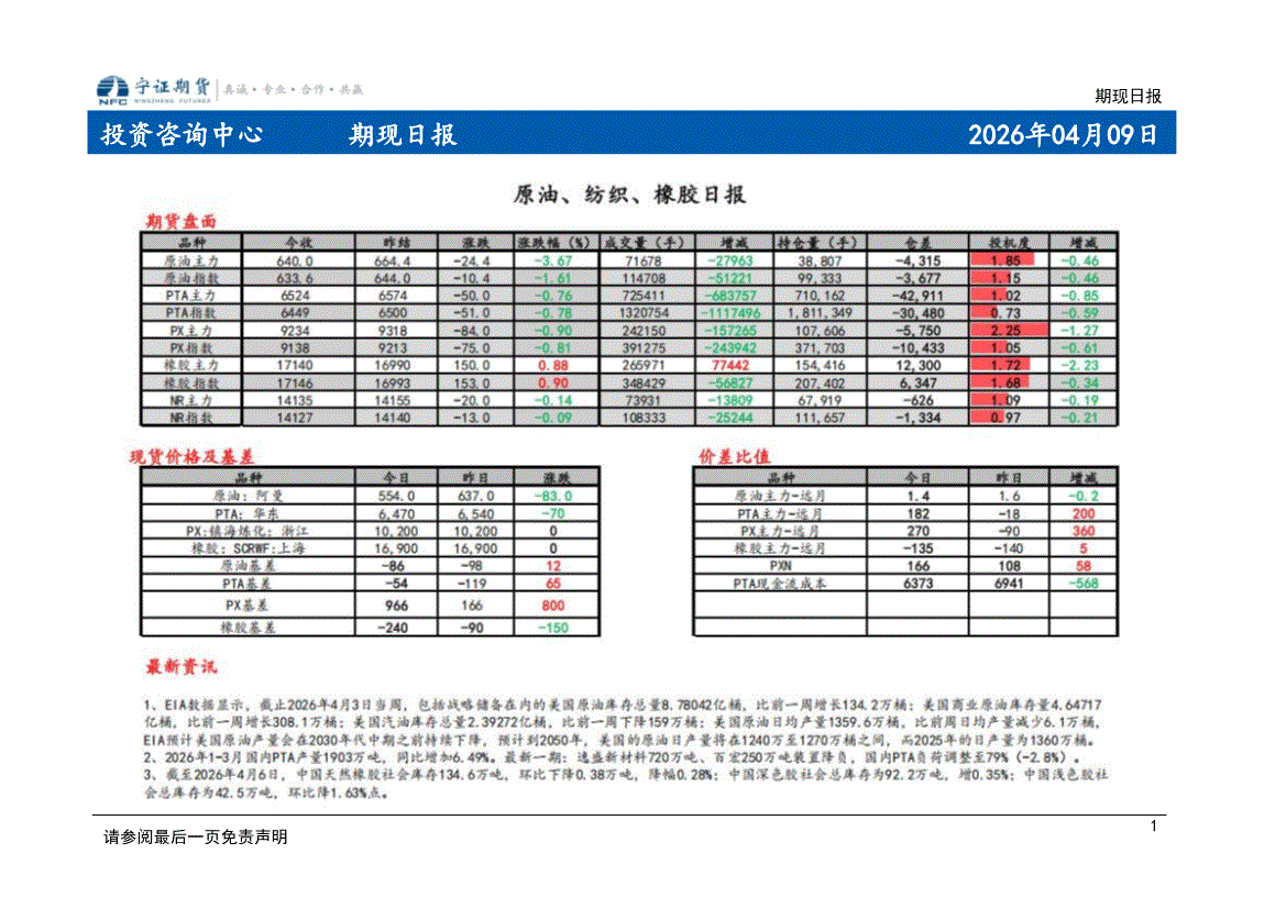 宁证期货-PTA期货周报:供应收缩、震荡偏强-260420