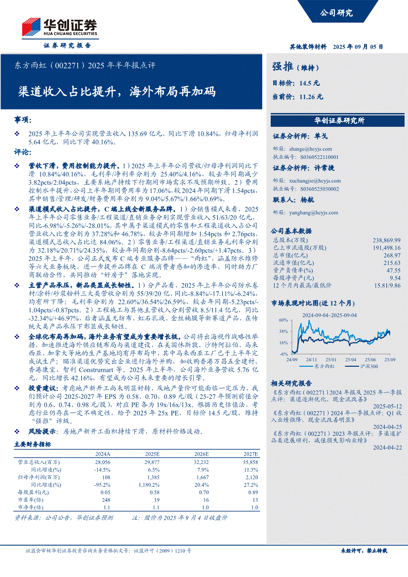 东方雨虹:华创证券-东方雨虹-002271-2025年半年报点评:渠道收入占比提升,海外布局再加码-250905