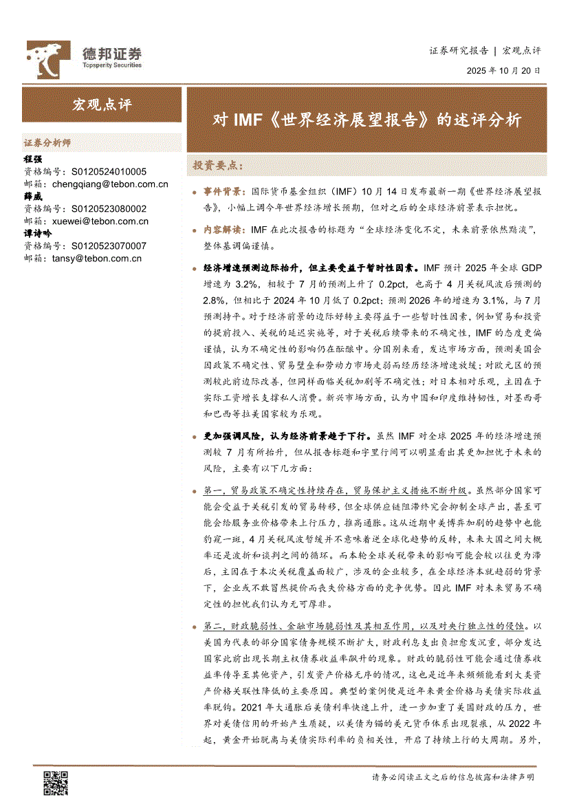 德邦证券-宏观点评:对IMF《世界经济展望报告》的述评分析-251020