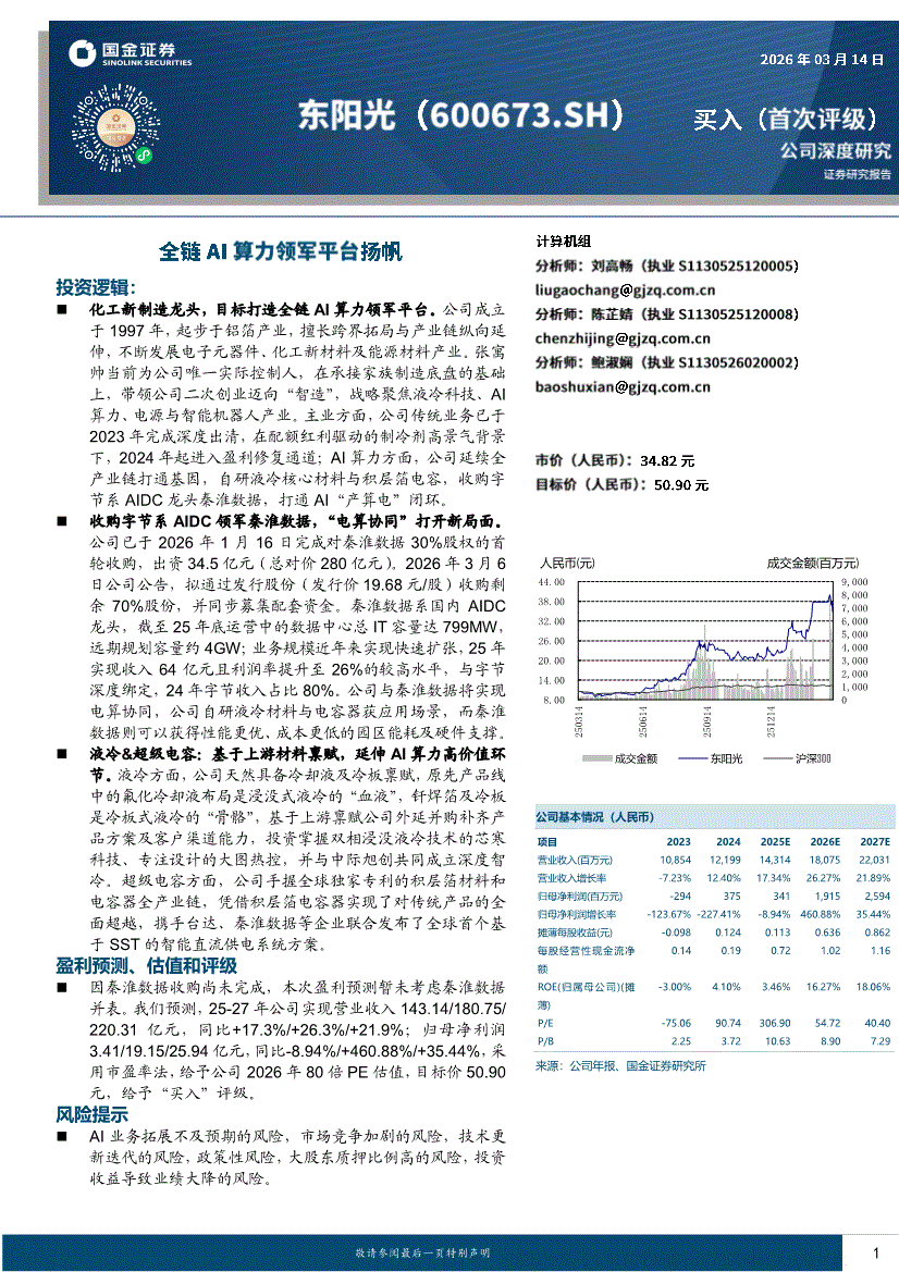 东阳光:国金证券-东阳光-600673-全链AI算力领军平台扬帆-260314