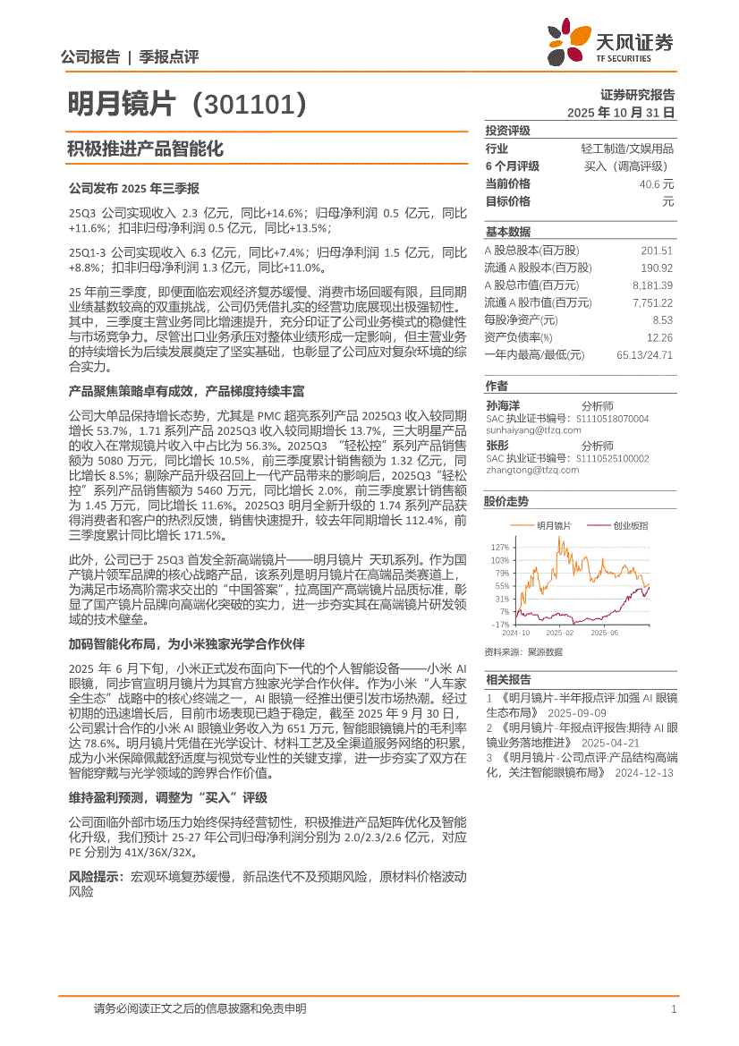 明月镜片:天风证券-明月镜片-301101-积极推进产品智能化-251031