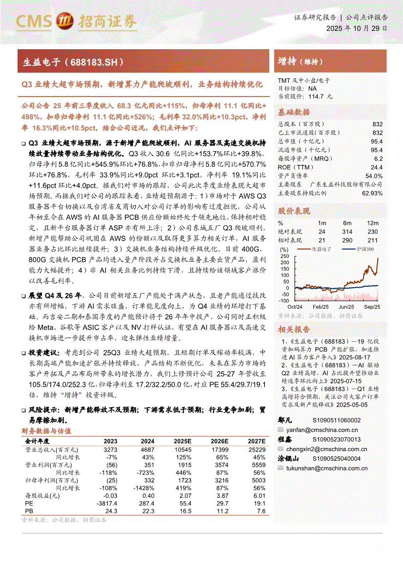生益电子:招商证券-生益电子-688183-Q3业绩大超市场预期,新增算力产能爬坡顺利,业务结构持续优化-251029