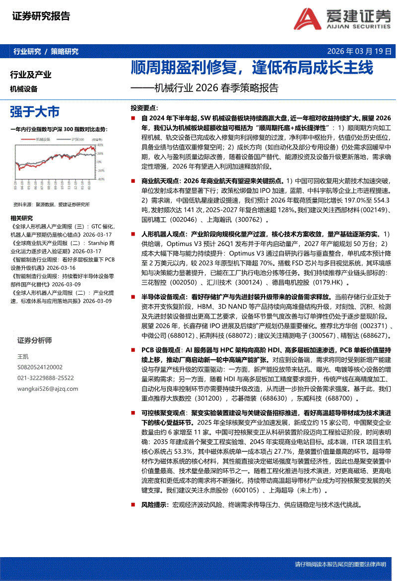机械行业:爱建证券-机械行业2026春季策略报告:顺周期盈利修复,逢低布局成长主线-260319