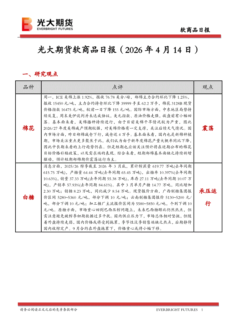 光大期货-软商品日报-260414