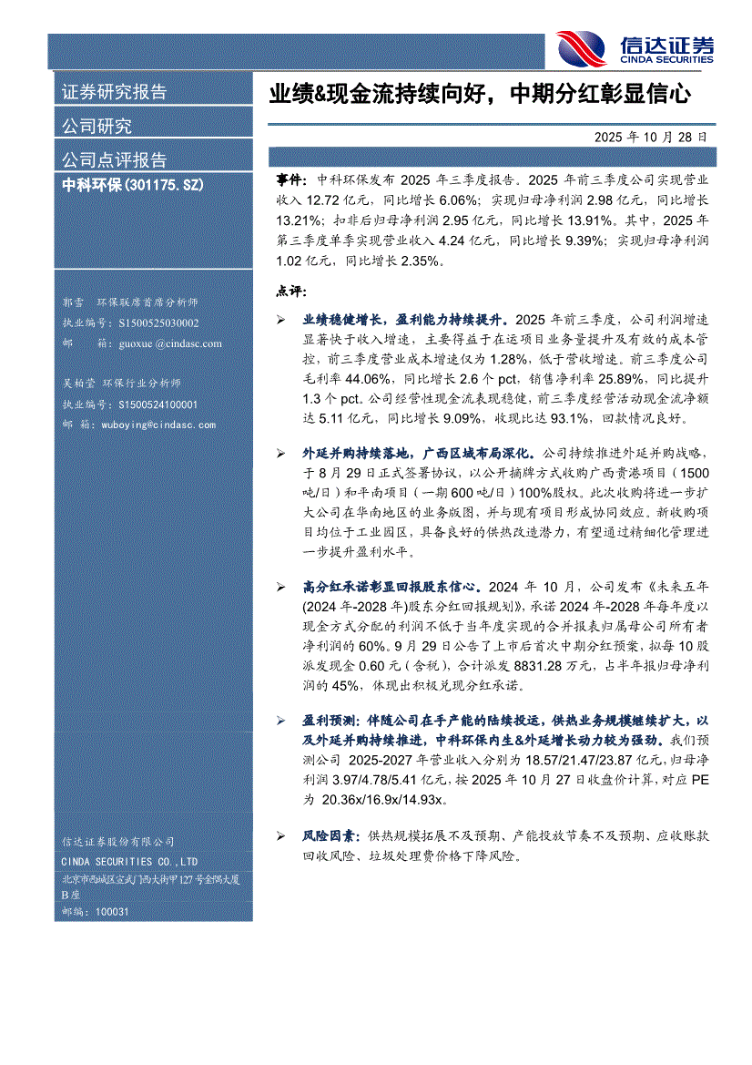 中科环保:信达证券-中科环保-301175-业绩&现金流持续向好,中期分红彰显信心-251028