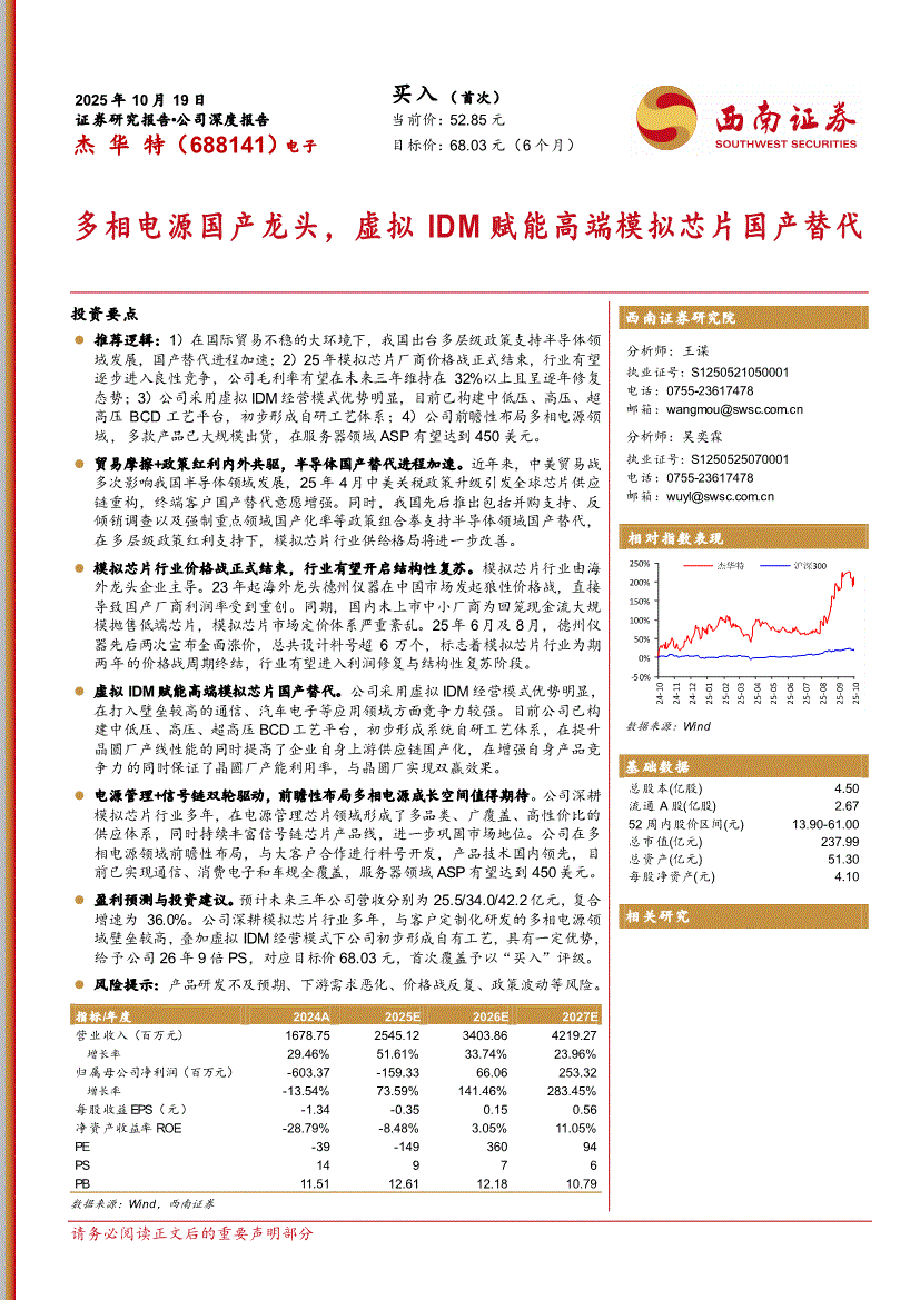 杰华特:西南证券-杰华特-688141-多相电源国产龙头,虚拟IDM赋能高端模拟芯片国产替代-251019