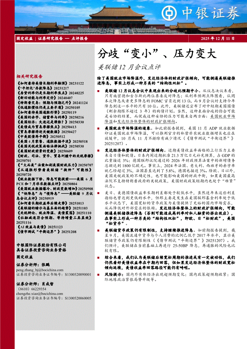 中银国际-美联储12月会议点评:分歧“变小”、压力变大-251211