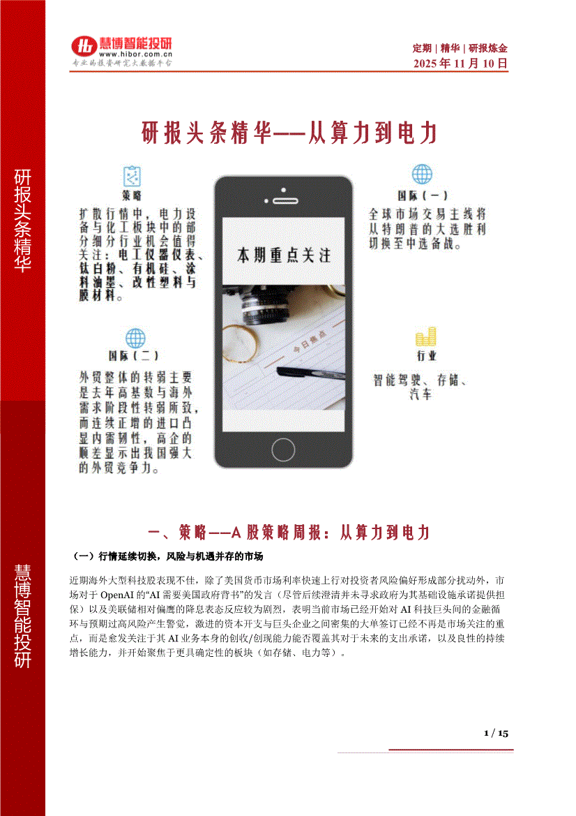 慧博智能投研-慧博研报炼金之研报头条精华:从算力到电力-251110