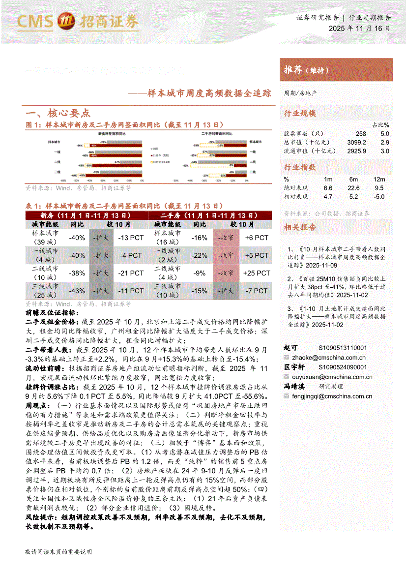 房地产行业:招商证券-房地产行业样本城市周度高频数据全追踪:一线四城二手成交价格均同比降幅扩大-251116