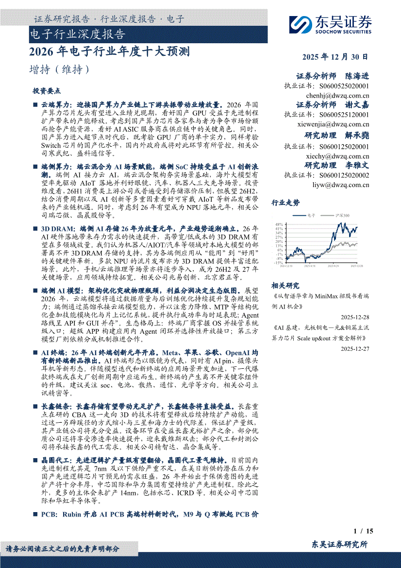 电子行业:东吴证券-电子行业深度报告:2026年电子行业年度十大预测-251230
