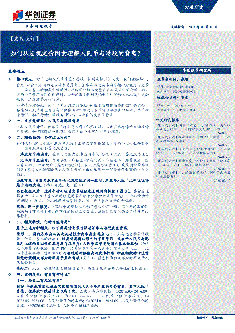 华创证券-【宏观快评】如何从宏观定价因素理解人民币与港股的背离?-260303