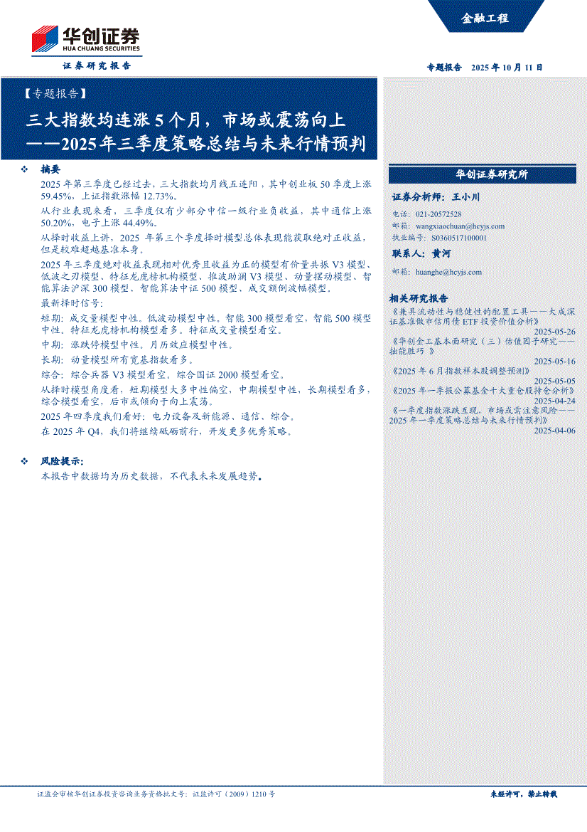华创证券-【专题报告】2025年三季度策略总结与未来行情预判:三大指数均连涨5个月,市场或震荡向上-251011