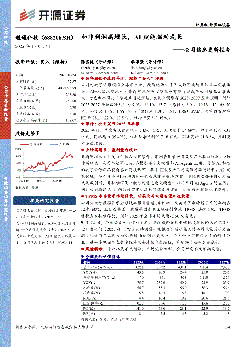 道通科技:开源证券-道通科技-688208-公司信息更新报告:扣非利润高增长,AI赋能驱动成长-251027