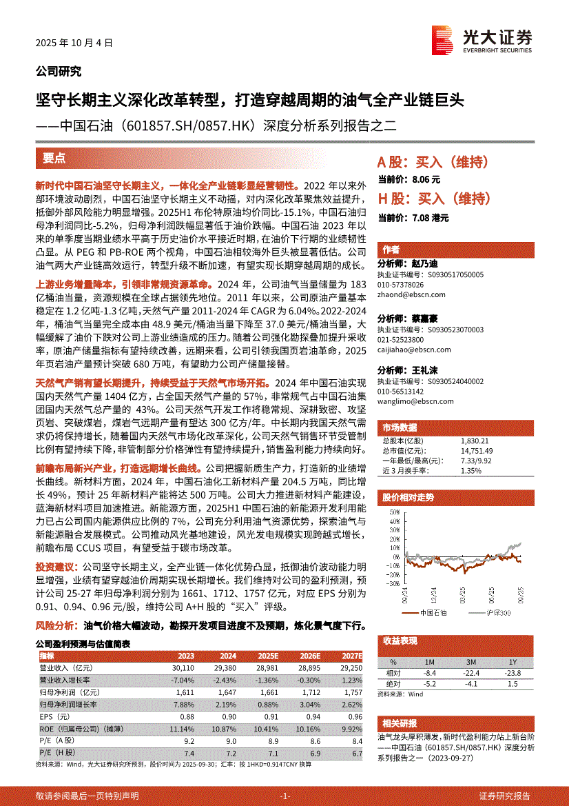 中国石油:光大证券-中国石油-601857-深度分析系列报告之二:坚守长期主义深化改革转型,打造穿越周期的油气全产业链巨头-251004