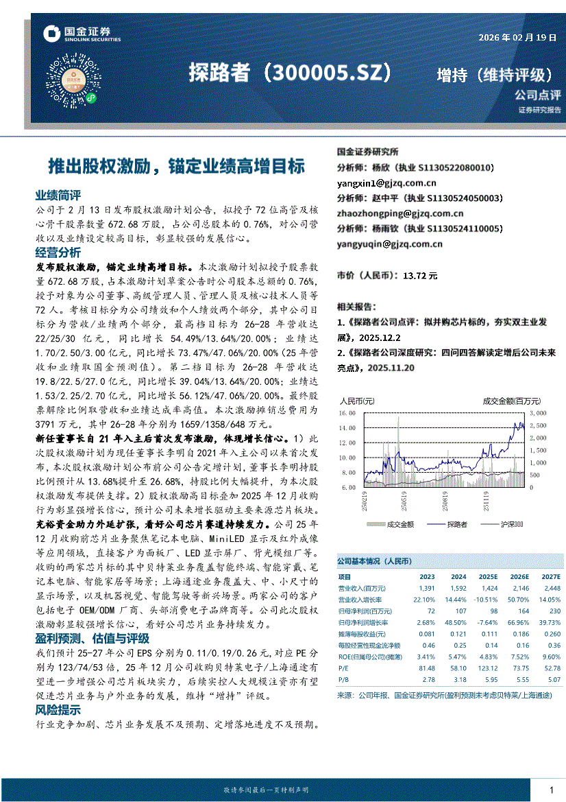 探路者:国金证券-探路者-300005-推出股权激励,锚定业绩高增目标-260219