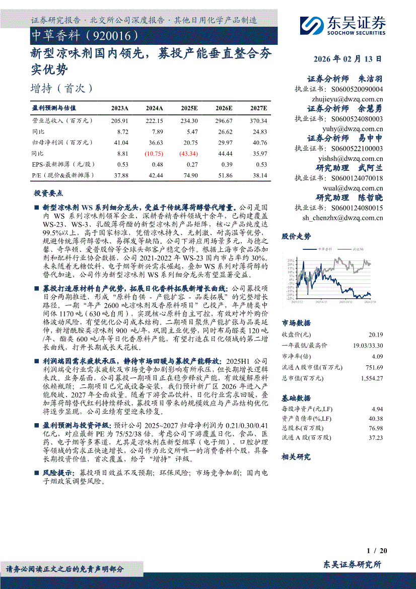 中草香料:东吴证券-中草香料-920016-新型凉味剂国内领先,募投产能垂直整合夯实优势-260213
