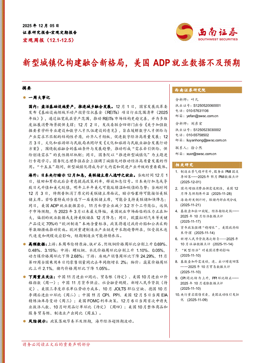 西南证券-宏观周报:新型城镇化构建融合新格局,美国ADP就业数据不及预期-251205