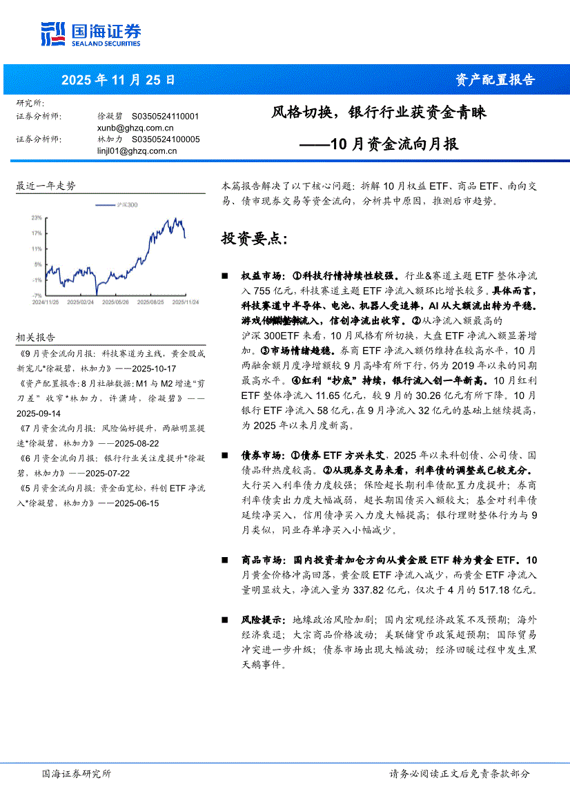 国海证券-10月资金流向月报:风格切换,银行行业获资金青睐-251125