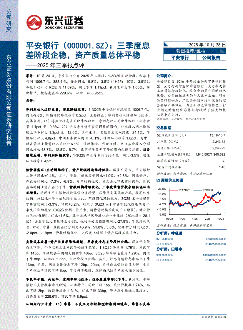 平安银行:东兴证券-平安银行-000001-2025年三季报点评:三季度息差阶段企稳,资产质量总体平稳-251028