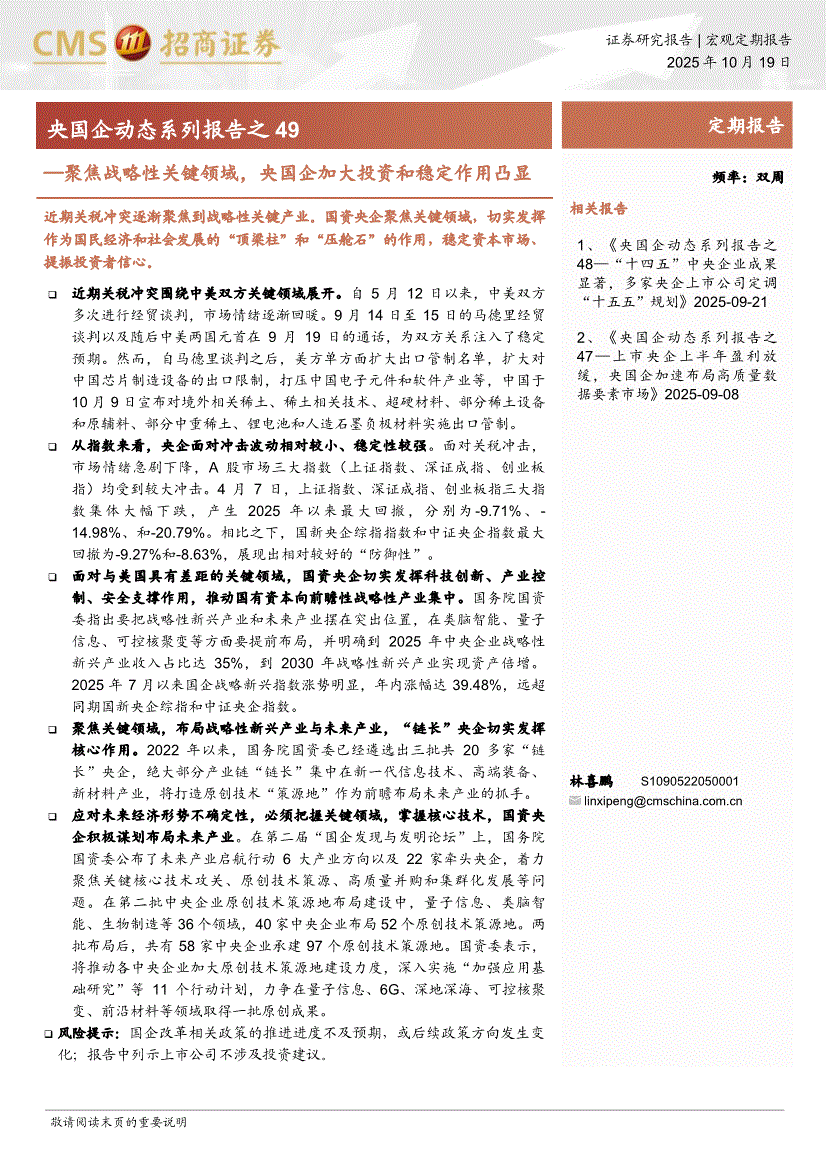 招商证券-央国企动态系列报告之49:聚焦战略性关键领域,央国企加大投资和稳定作用凸显-251019