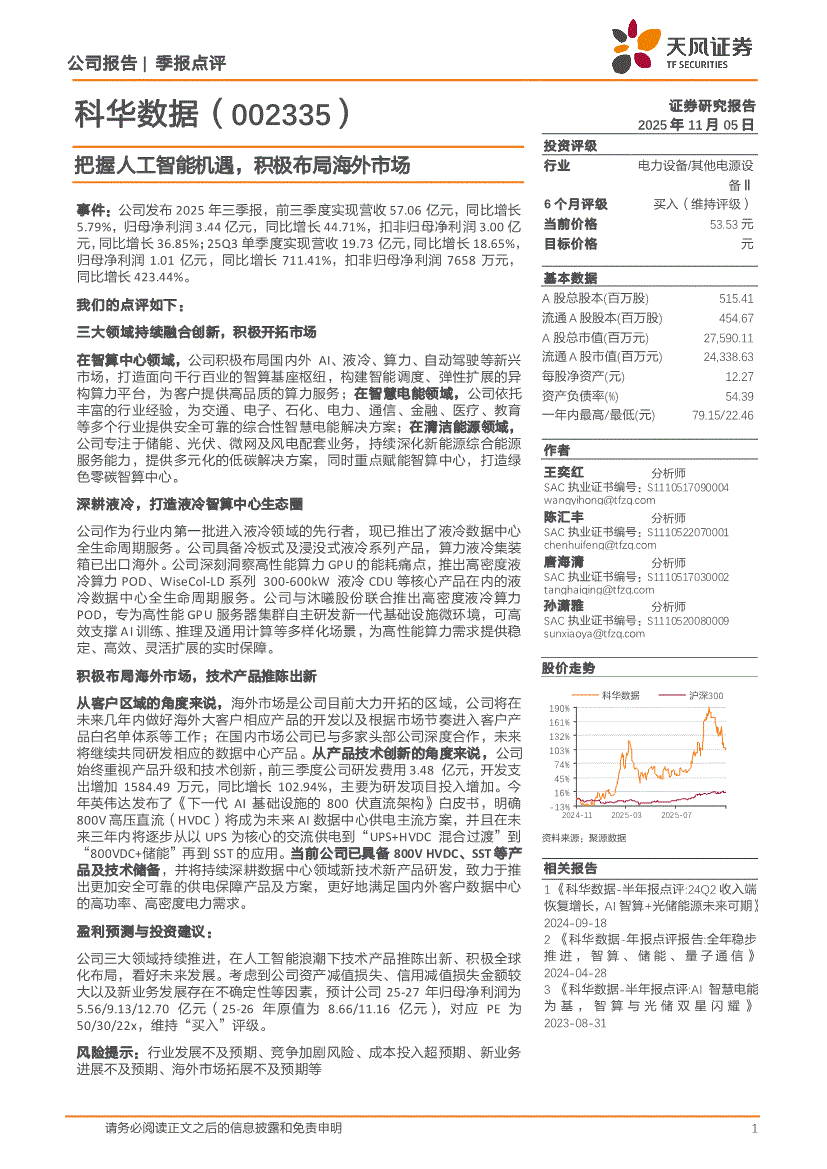 科华数据:天风证券-科华数据-002335-把握人工智能机遇,积极布局海外市场-251105