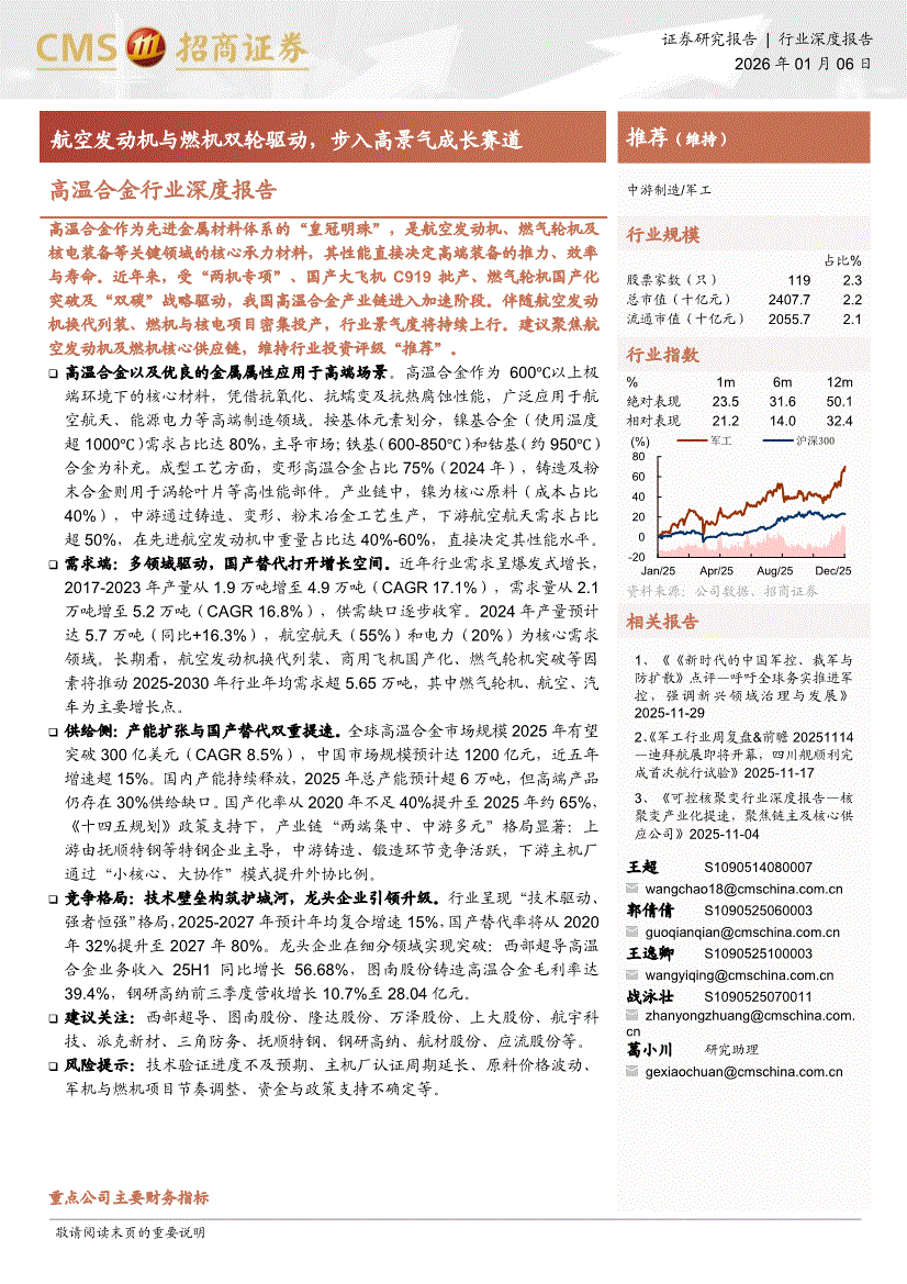高温合金行业:招商证券-高温合金行业深度报告:航空发动机与燃机双轮驱动,步入高景气成长赛道-260106