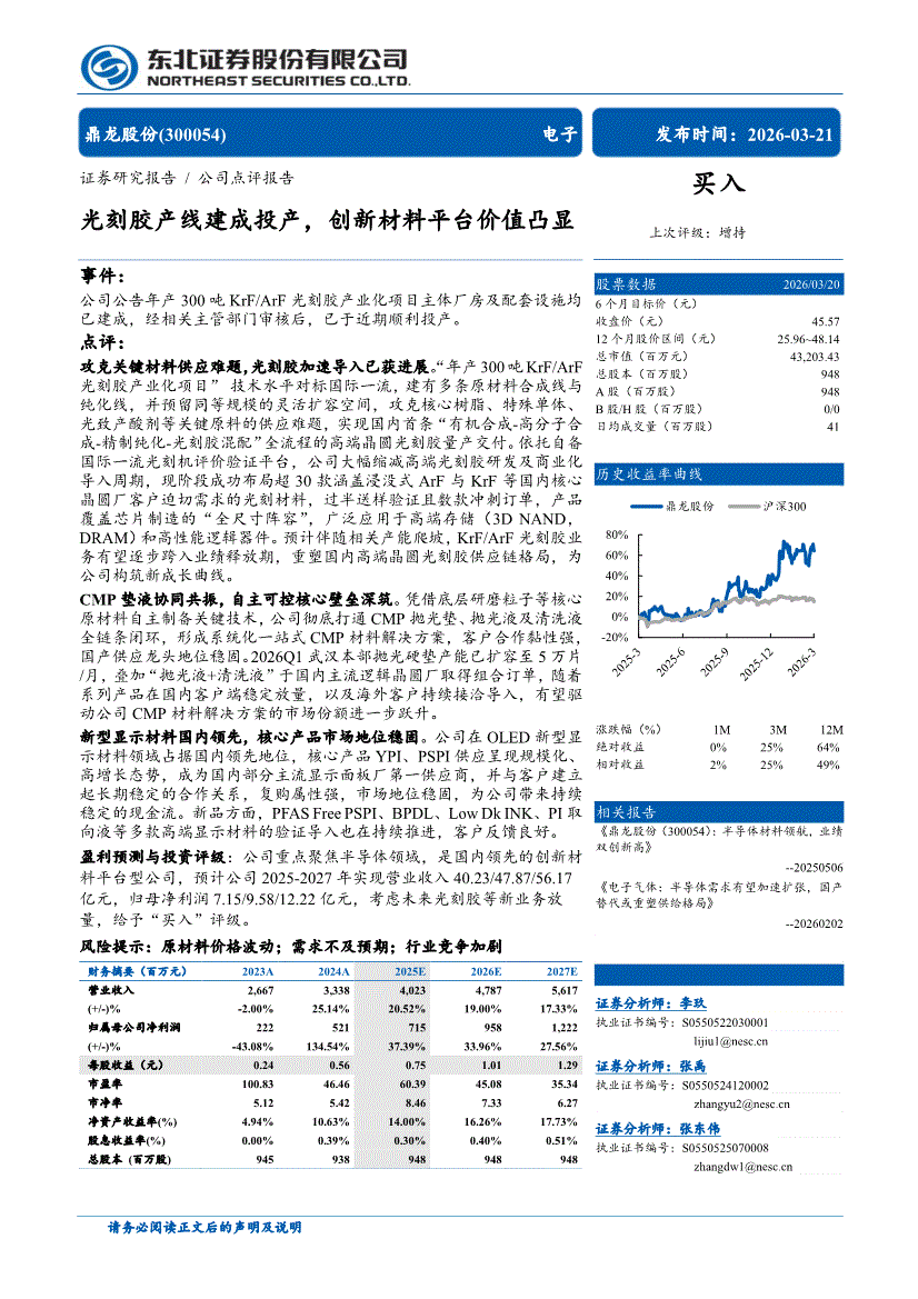鼎龙股份:东北证券-鼎龙股份-300054-光刻胶产线建成投产,创新材料平台价值凸显-260321
