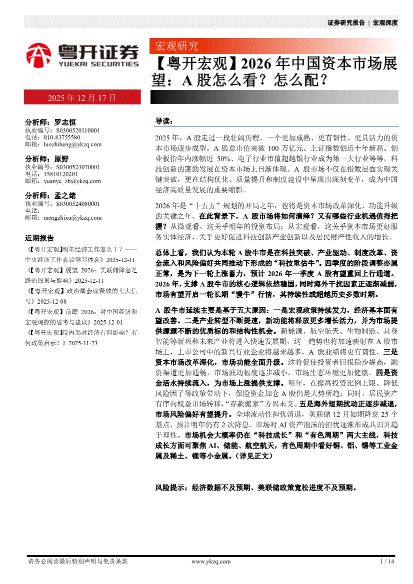 粤开证券-【粤开宏观】2026年中国资本市场展望:A股怎么看?怎么配?-251217
