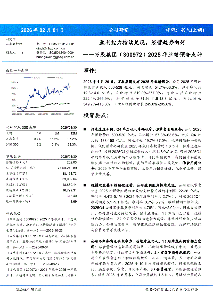 万辰集团:国海证券-万辰集团-300972-2025年业绩预告点评:盈利能力持续兑现,经营趋势向好-260201