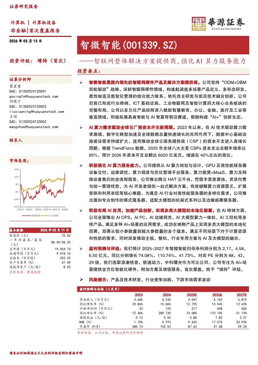 智微智能:华源证券-智微智能-001339-智联网整体解决方案提供商,强化AI算力服务能力-260313