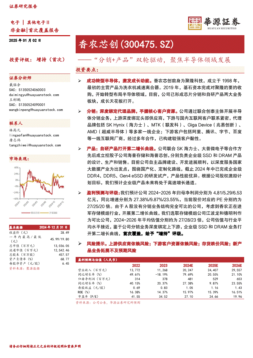 香农芯创:华源证券-香农芯创-300475-“分销+产品”双轮驱动,聚焦半导体领域发展-250102