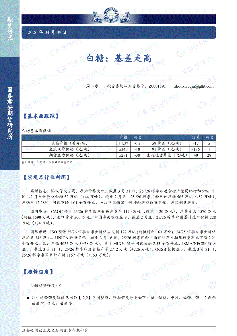 国泰君安期货-白糖:基差走高-260409