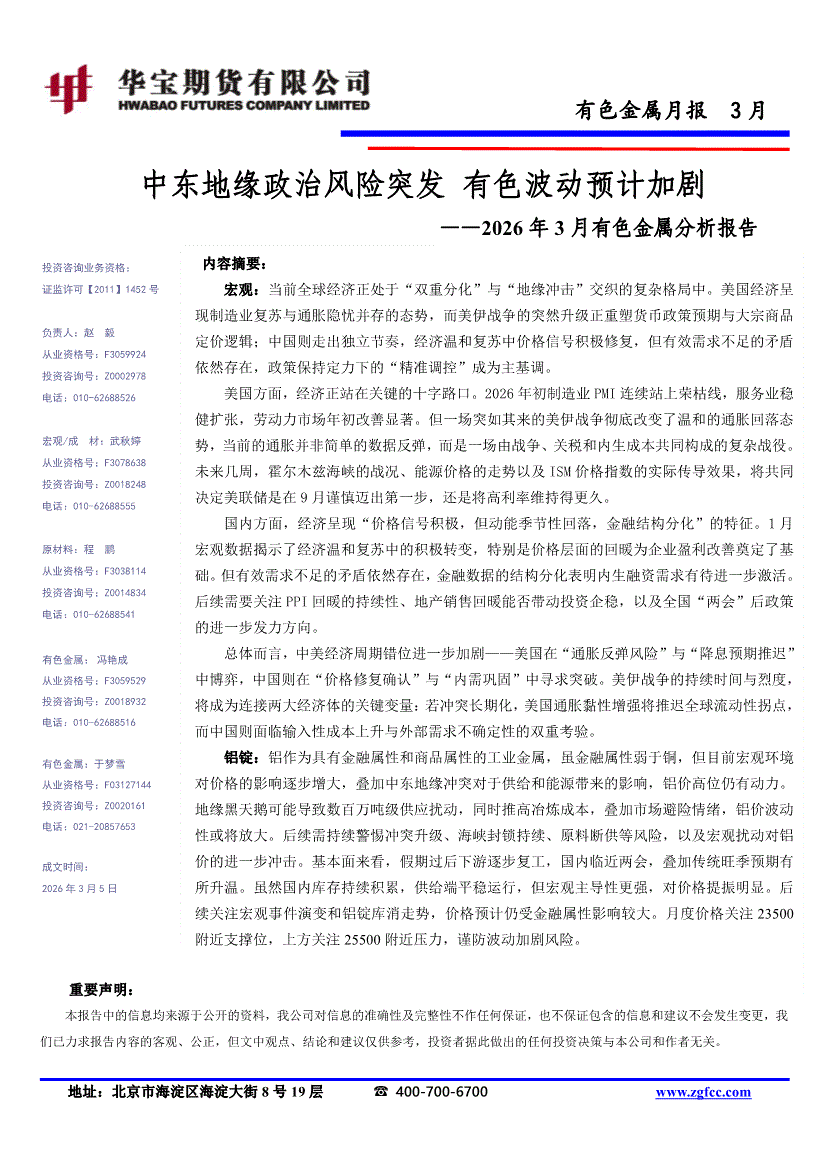 华宝期货-2026年3月有色金属分析报告:中东地缘政治风险突发,有色波动预计加剧-260305