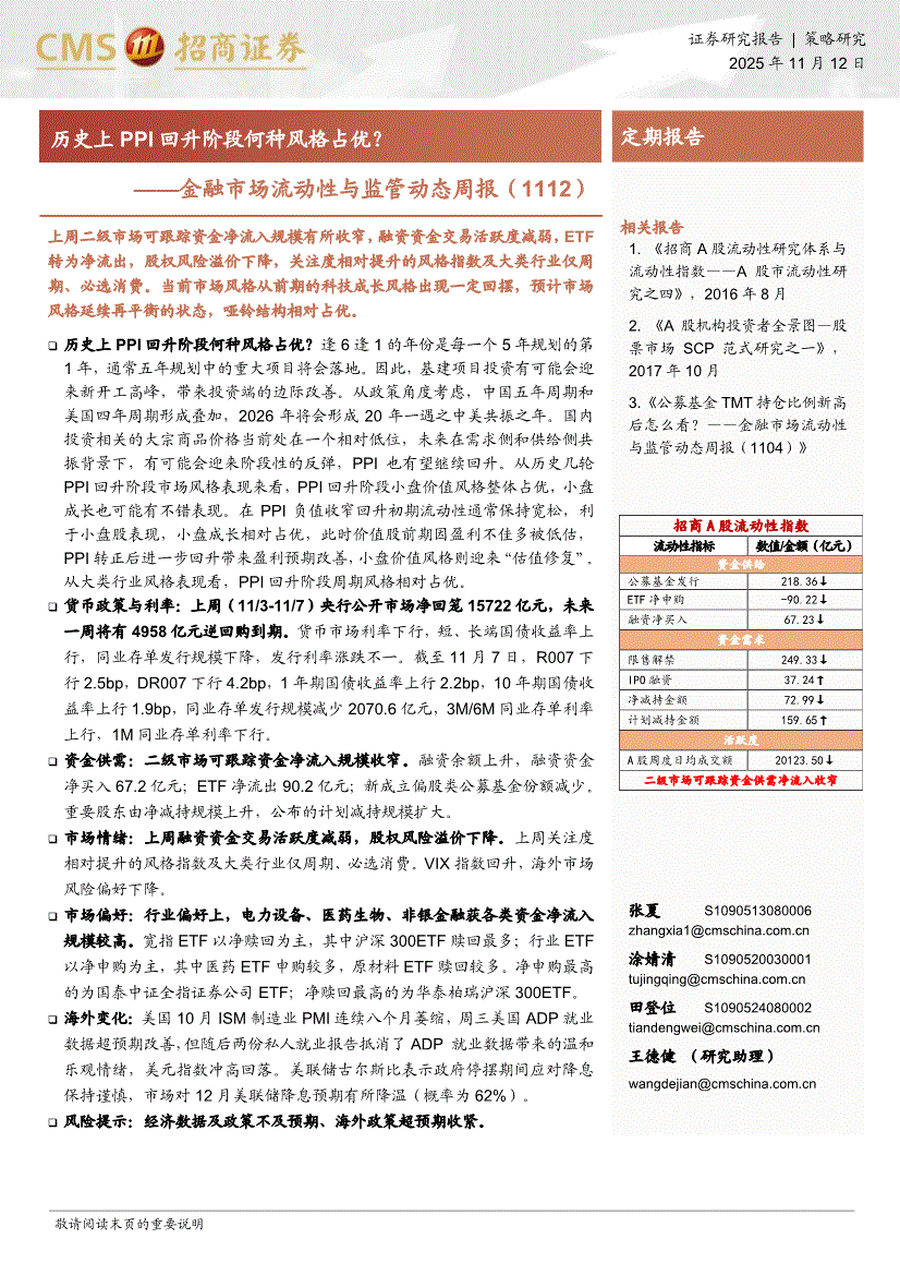 招商证券-金融市场流动性与监管动态周报:历史上PPI回升阶段何种风格占优?-251112