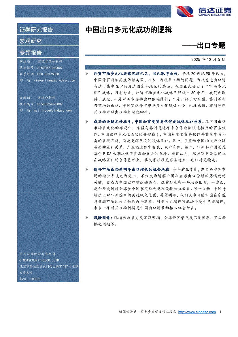 信达证券-出口专题:中国出口多元化成功的逻辑-251205
