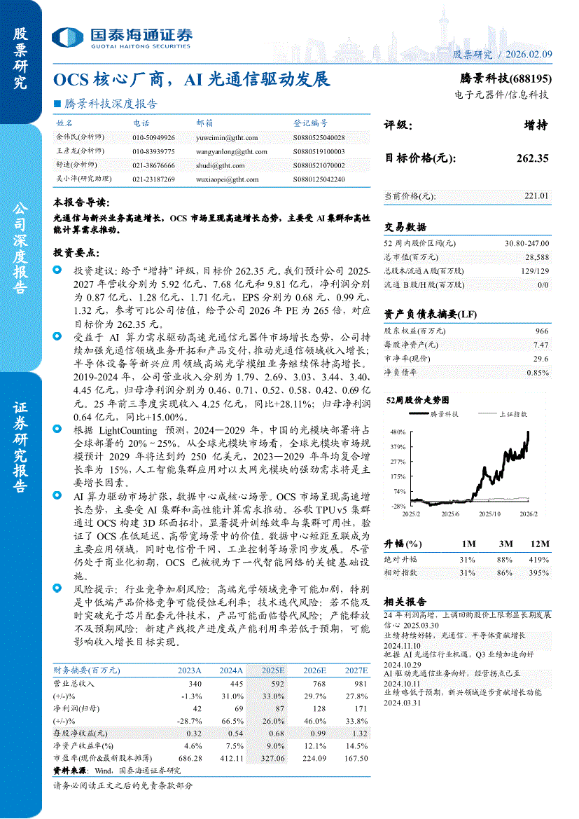 腾景科技:国泰海通证券-腾景科技-688195-深度报告:OCS核心厂商,AI光通信驱动发展-260209