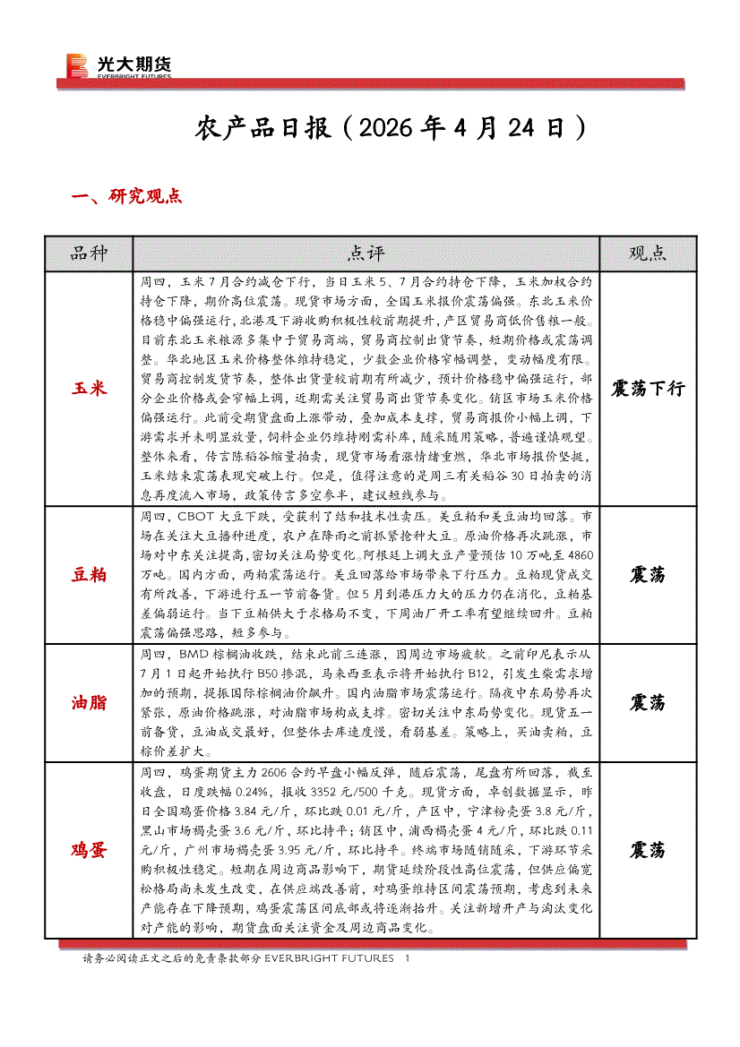 光大期货-光期农产品:生猪、鸡蛋策略周报-260412