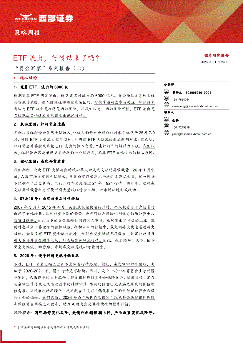 西部证券-“资金洞察”系列报告(六):ETF流出,行情结束了吗?-260124