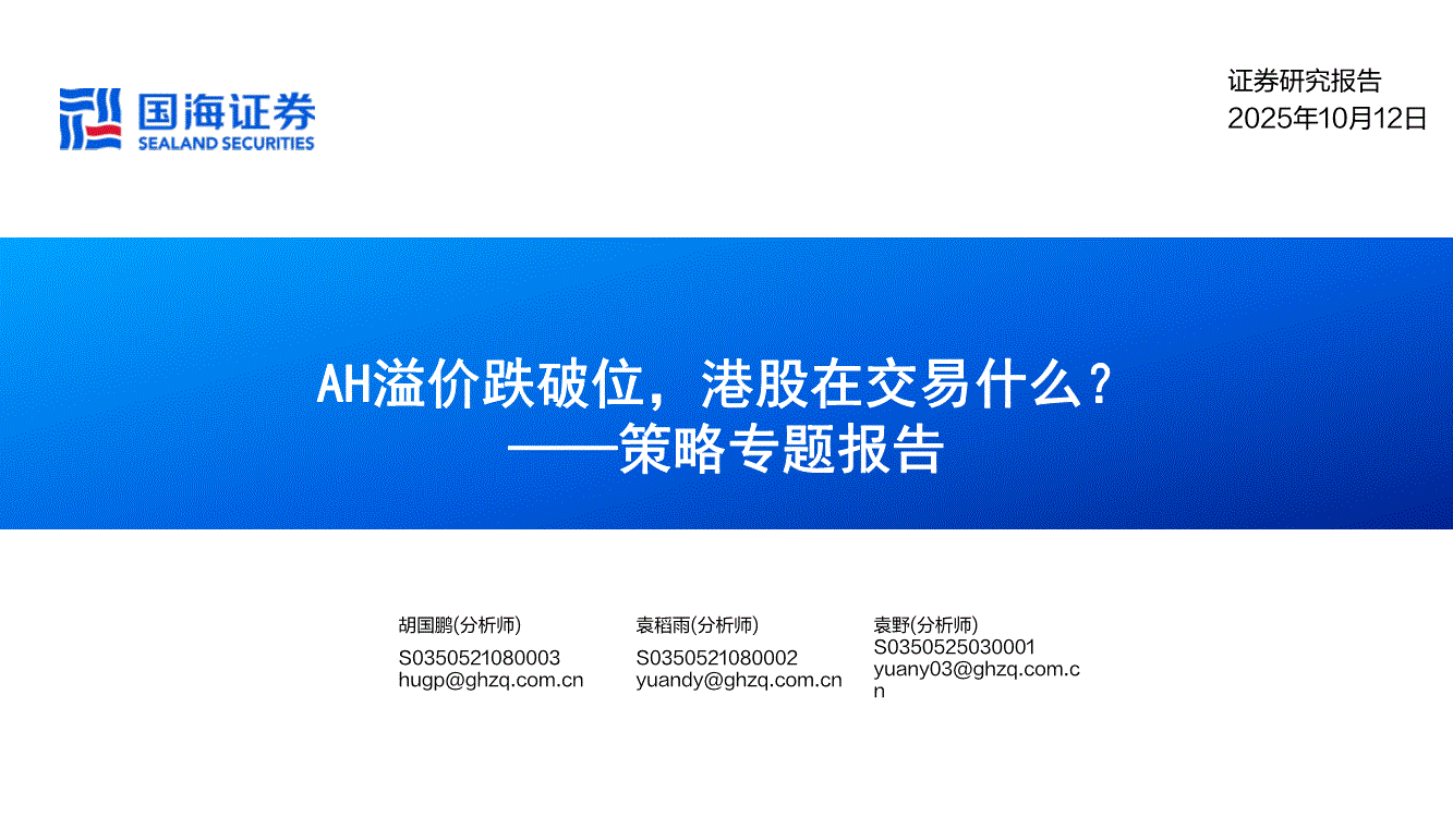 国海证券-策略专题报告:AH溢价跌破位,港股在交易什么?-251012